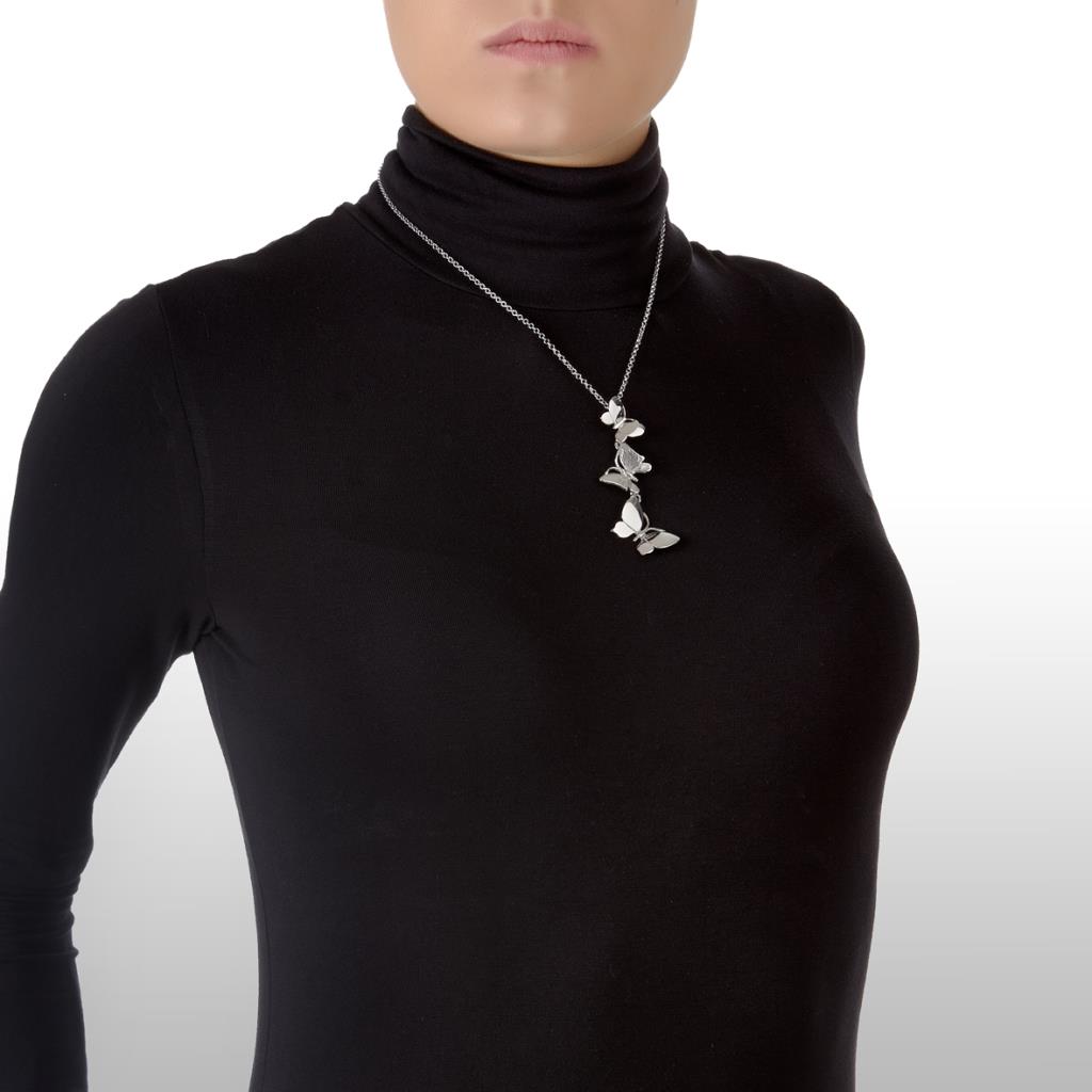 Collana in Argento 925Lunghezza catena 45 cm.Collezione Farfalle - Leggero nell'aria, il battito d'ala d'una farfalla è perfetto come il gioiello più bello. Peso: 13 gr.Pendente con elementi snodati altezza 6,5 cm. Chiusura a moschettone. Fatto a mano in Italia.