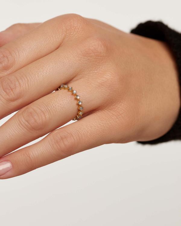 MATERIALE: Argento Sterling 925 FINITURA: Placcatura in Oro 18k PIETRE: Base in Madreperla e cristalli blu PESO: 2.3 g*La tonalità delle pietre semipreziose potrebbe variare leggermente a causa della loro origine naturale