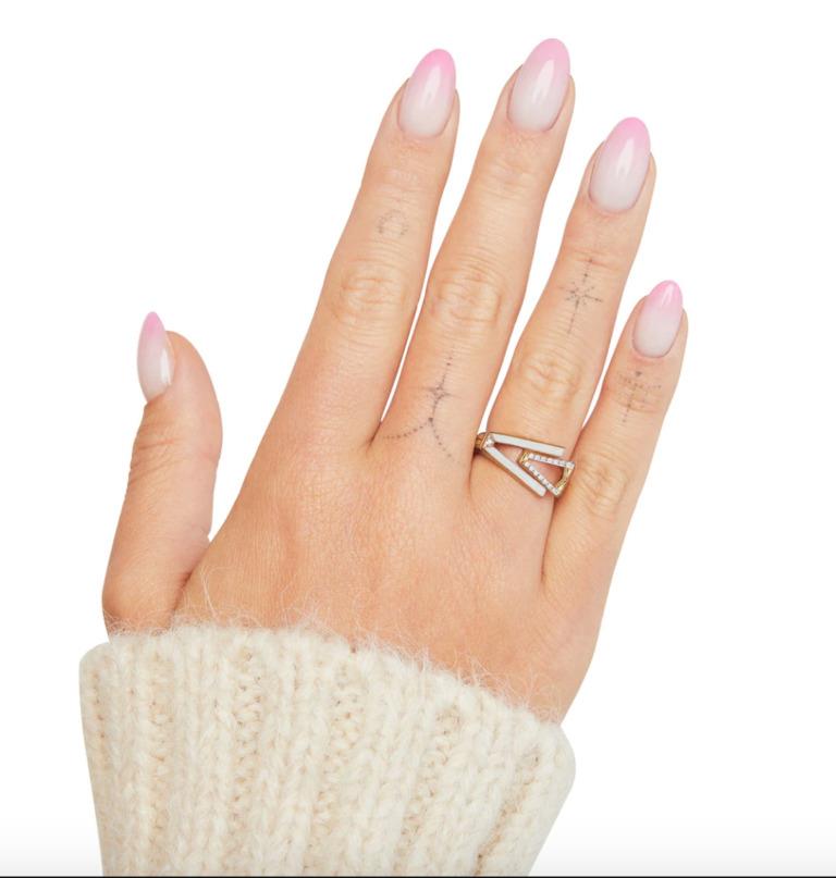 Anello Mia White, in argento 925°%, placcatura oro giallo. Questo anello presenta nella parte superiore un soggetto a forma di V tempestato di pavé di zirconi bianchi e una V più grande con smalto bianco. Tutti i gioielli Valentina Ferragni sono Made in Italy, in argento 925°% placcati in oro 18kt.