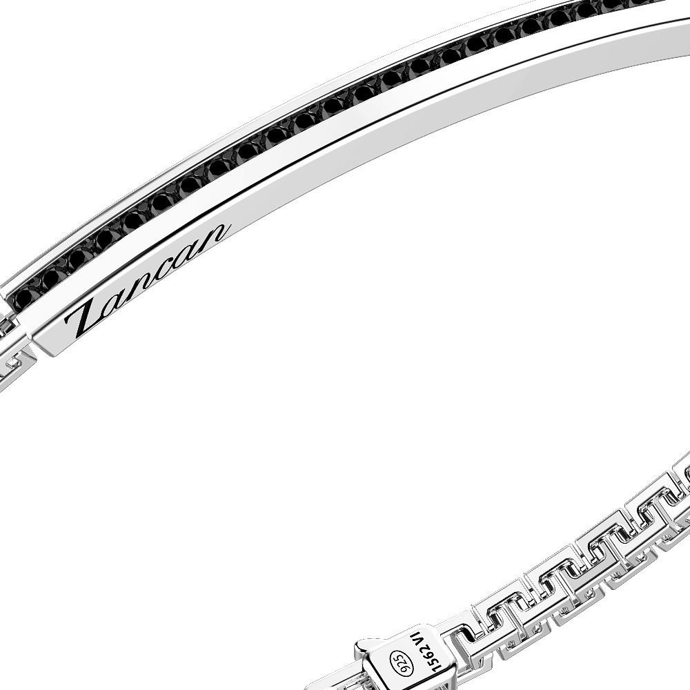 Bracciale da uomo in argento con maglie in stile greco.Sezione centrale quadra con binario di spinelli neri al centro.Chiusura con moschettone quadro.Elegante e studiato per essere seducete e lavorato nella sua semplicità, un accessorio unico per te.