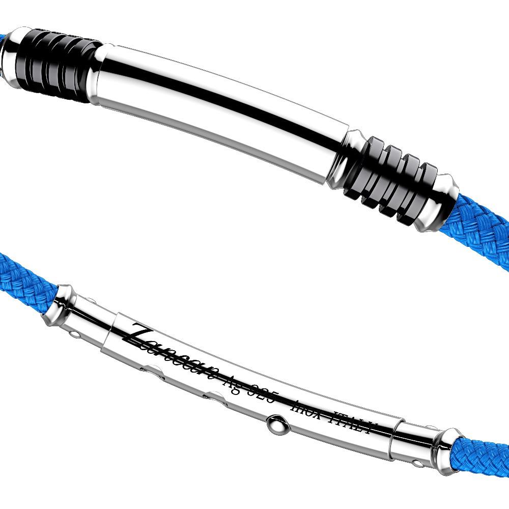 Bracciale da uomo in argento e kevlar.La chiusura in acciaio 316L medicale è regolabile su tre posizioni.Il tubo centrale e gli inserti sono in argento 925 per un peso complessivo di 1 gr.Il cinturino è in kevlar colorato.La chiusura è in acciaio anallergico (316L medicale)Misura centrale 20 cm.