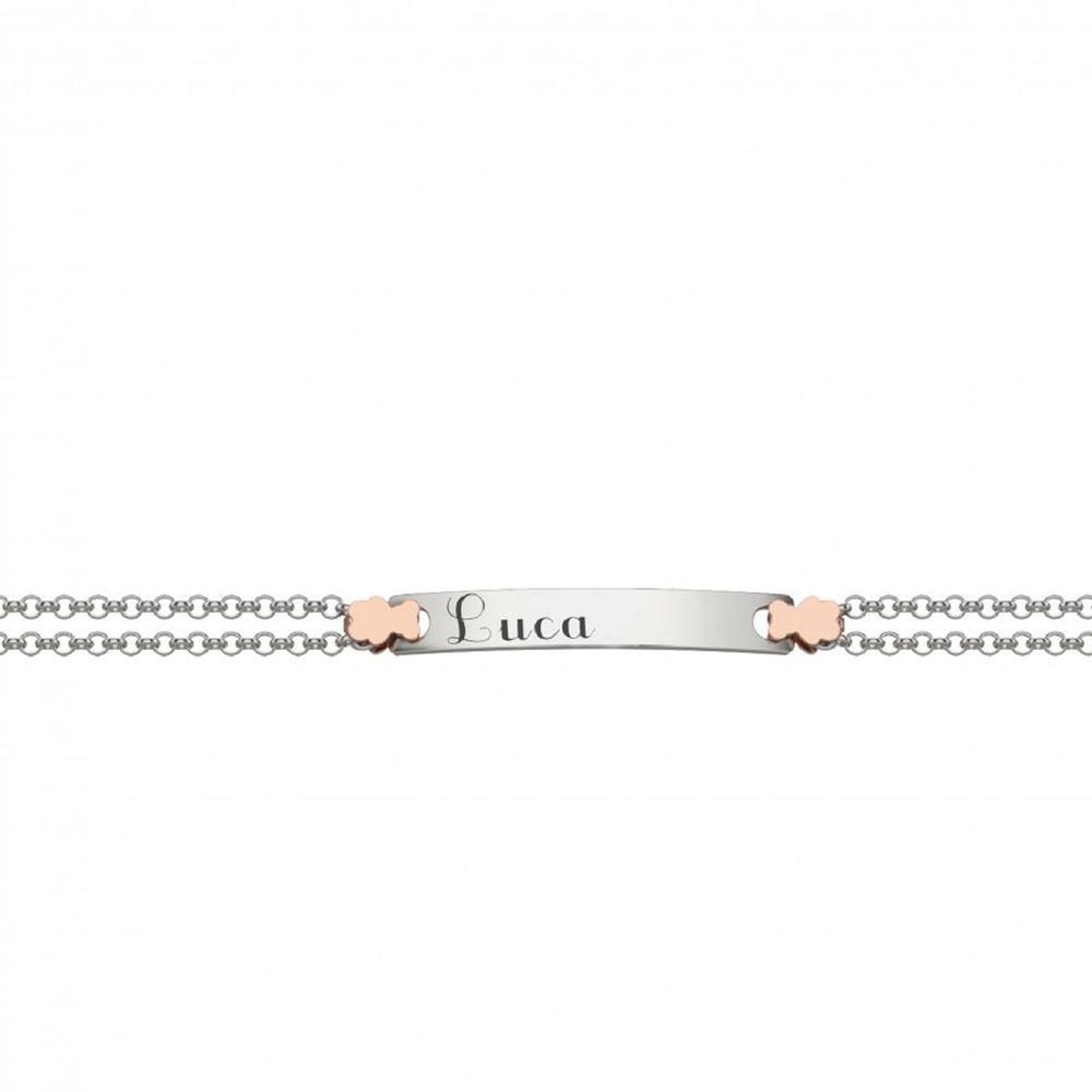 Il fine bracciale in puro argento 925% della linea Bijou è rifinito nei dettagli, due orsetti decorano la taghetta in cui inserire il tuo nome o quello del tuo bimbo.Dono prezioso, ricordo per la vita. N.B. Al momento dell'acquisto inserisci il nome nelle note. Per la personalizzazione sono previsti minimo 7 giorni di attesa. Colore: ARGENTO BIANCODimensione: Lunghezza bracciale cm 12 regolabile fino a cm 15,50Composizione: Argento 925%
