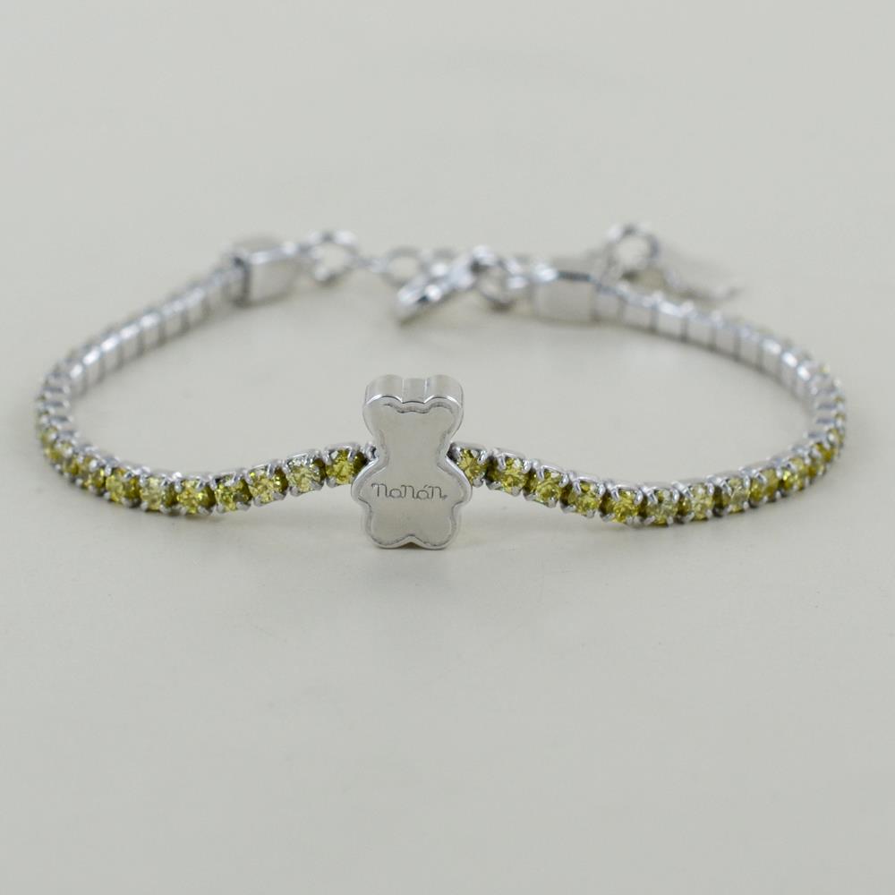 Il raffinato bracciale tennis in puro argento della linea Nanàn Bijou reso unico e speciale dal charm del nostro dolce orsetto Tato. Versione GIALLO