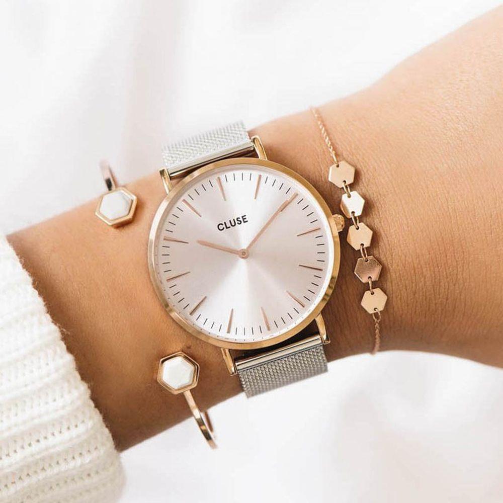 Colore della cassa: RosaColore del quadrante: ArgentoDiametro del quadrante: 38 mm Colore del cinturino: ArgentoMateriale del cinturino: Acciaio inossidabile Larghezza del cinturino: 18 mmFibbia: Fibbia gioiello Materiale del quadrante: Metallo Spessore del quadrante: 7 mm Movimento: Quarzo Vetro: Minerale Display: Analogico Resistente all'acqua: 3 ATM