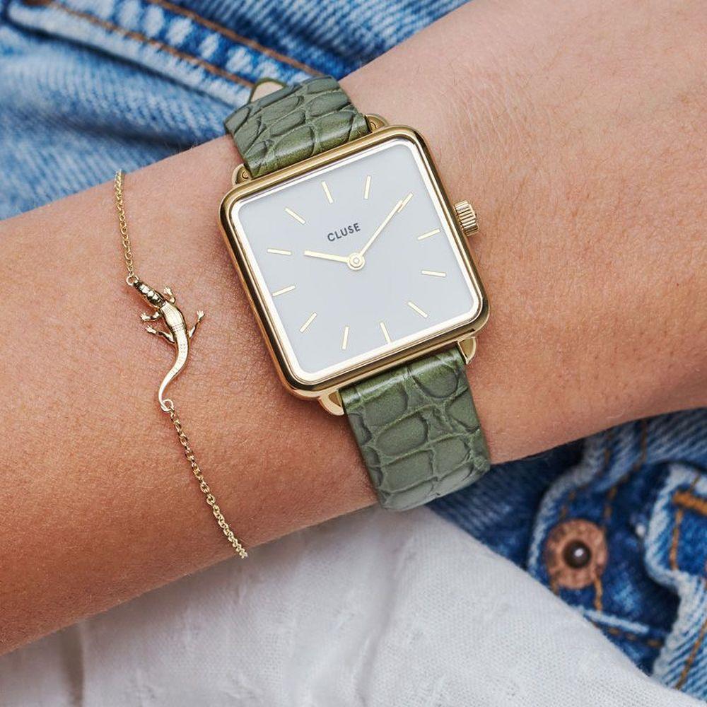 Colore dellaa cassa: Oro Colore del quadrante: Bianco Diametro del quadrante: 28.5 mm Materiale del cinturino: PelleLarghezza del cinturino: 16 mm Colore della fibbia: Oro Materiale del quadrante: OttoneFibbia: Fibbia Colore del cinturino: Verde AlligatoreMateriale del quadrante: Vetro Spessore del quadrante: 6.8 mm Movimento: Quarzo Vetro: Minerale Display: Analogico Resistente all'acqua: 3 ATM
