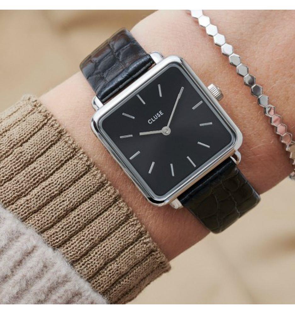 Collezione La tetragone Custodia: colore Argento Quadrante: colore Nero Cinturino: colore Alligatore nero Cinturino: materiale Pelle Custodia: diametro 28,5 mm Quadrante: materiale Ottone Custodia: materiale Acciaio inossidabile Fibbia: Fibbia Fibbia: colore Argento Custodia: spessore 6.8 mm