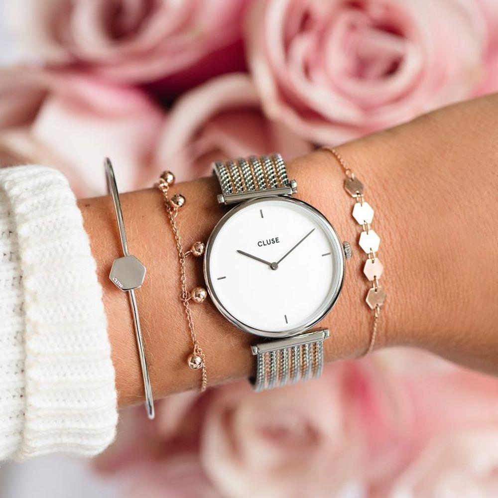 Colore della cassa: Argento Colore del quadrante: Bianco Diametro del quadrante: 33 mmColore del cinturino: Bicolour rosa e argentoMateriale del cinturino: Acciaio inossidabile Larghezza del cinturino: 16 mm Colore di fibbia: Argento Materiale del quadrante: BrassSpessore del quadrante: 7.5 mm Movimento: Quarzo Vetro: Minerale Display: Analogico Resistente all'acqua: 3 ATM