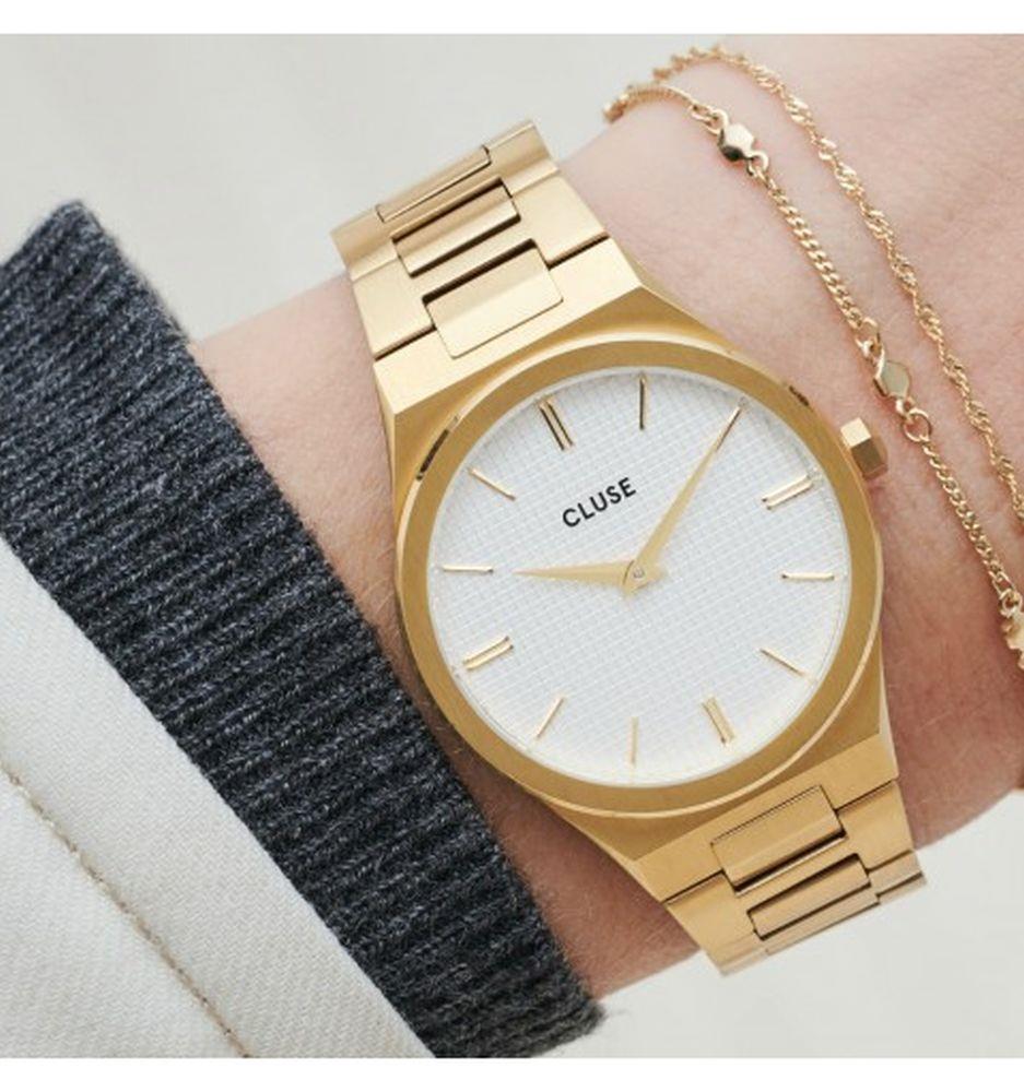 Custodia: colore Oro Quadrante: colore Bianco neve Cinturino: materiale Acciaio inossidabile Custodia: diametro 33 mm Quadrante: materiale Ottone Custodia: materiale Acciaio inossidabile Fibbia: colore Oro Custodia: spessore 8 mm