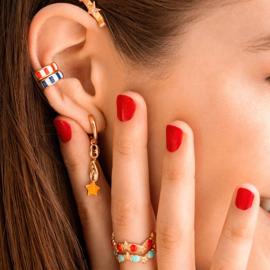 EARCUFF CERCHIETTO SMALTATO RIGHE BIANCHE E BLU