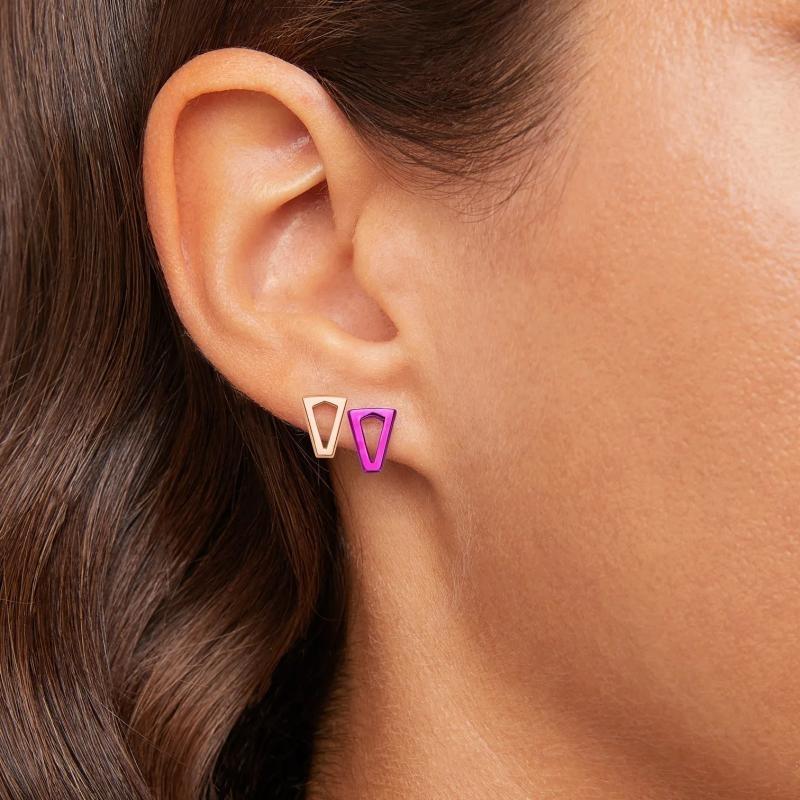 Orecchini a lobo della collezione Valentina Ferragni Joy metallic pink & gold da donna. Colore: rosa metallizzato e oro. Gli orecchini sono in argento 925‰ con placcatura in platino e con vernice effetto metallizzato rosa.Chiusura a perno. Made in Italy.