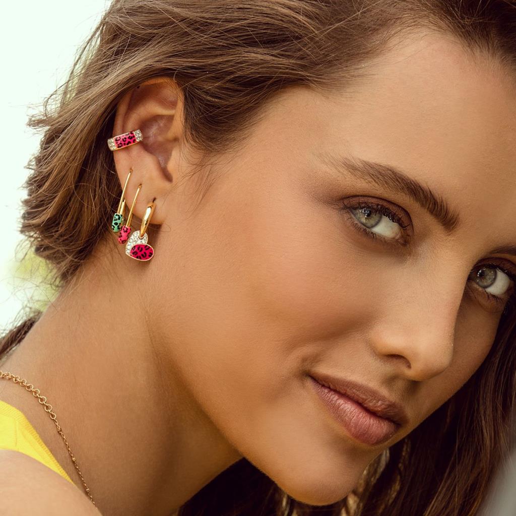 Smalto fluo in 3 colori maculato a mano Argento 925, Galvanica oro giallo 18Kt Altezza orecchino 2,5 cm