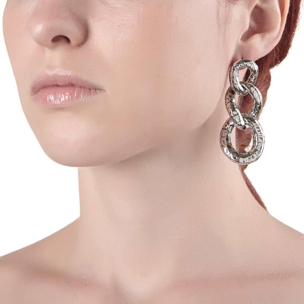 Orecchini in Argento 925Collezione Coccodrillo - La forza magica e antica dell'animalier per eccellenza. Intreccio elegante di argento sulla pelle nuda, l'emozione di possederlo.Peso coppia orecchini: 17 gr.Lunghezza 5,5 cm.Chiusura con farfallina. Fatto a mano in Italia.