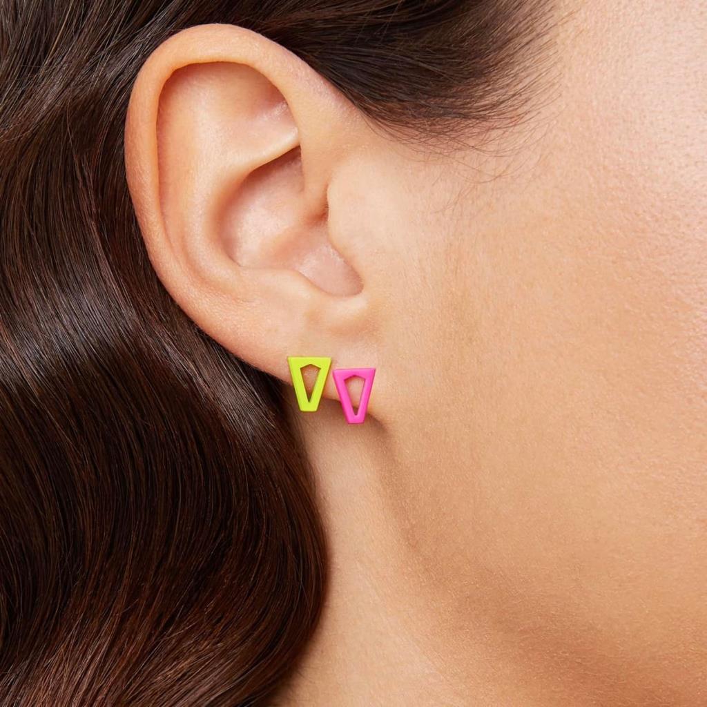 Coppia di orecchini a loboArgento 925Placcatura in platinoBagno di colore rosa fluo e lime fluoSenza nichelFatto in ItaliaTutti i gioielli VALENTINA FERRAGNI sono realizzati interamente in Italia, utilizzando solo materie di pregio come argento 925 e placcature in oro 24kt.I materiali utilizzati hanno subito un trattamento antiossidante e garantirne la lucentezza nel tempo si consiglia di evitare il contatto con agenti corrosivi come profumo, creme o acqua.I gioielli sono testati e rigorosamente nichel free.
