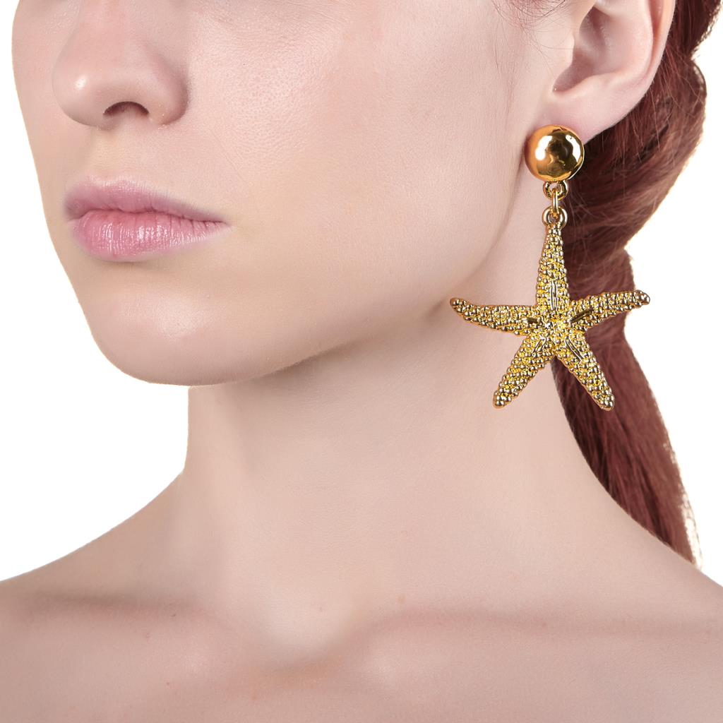 Orecchin in Argento 925 in bagno d'oro.Collezione Marine - Il Mediterraneo in un pomeriggio dorato: mare, sabbia e una manciata di stelle marine sfavillanti di luce.Peso coppia orecchini: 23 gr.Lunghezza 6,7 cm.Chiusura con farfallina. Fatto a mano in Itaia.