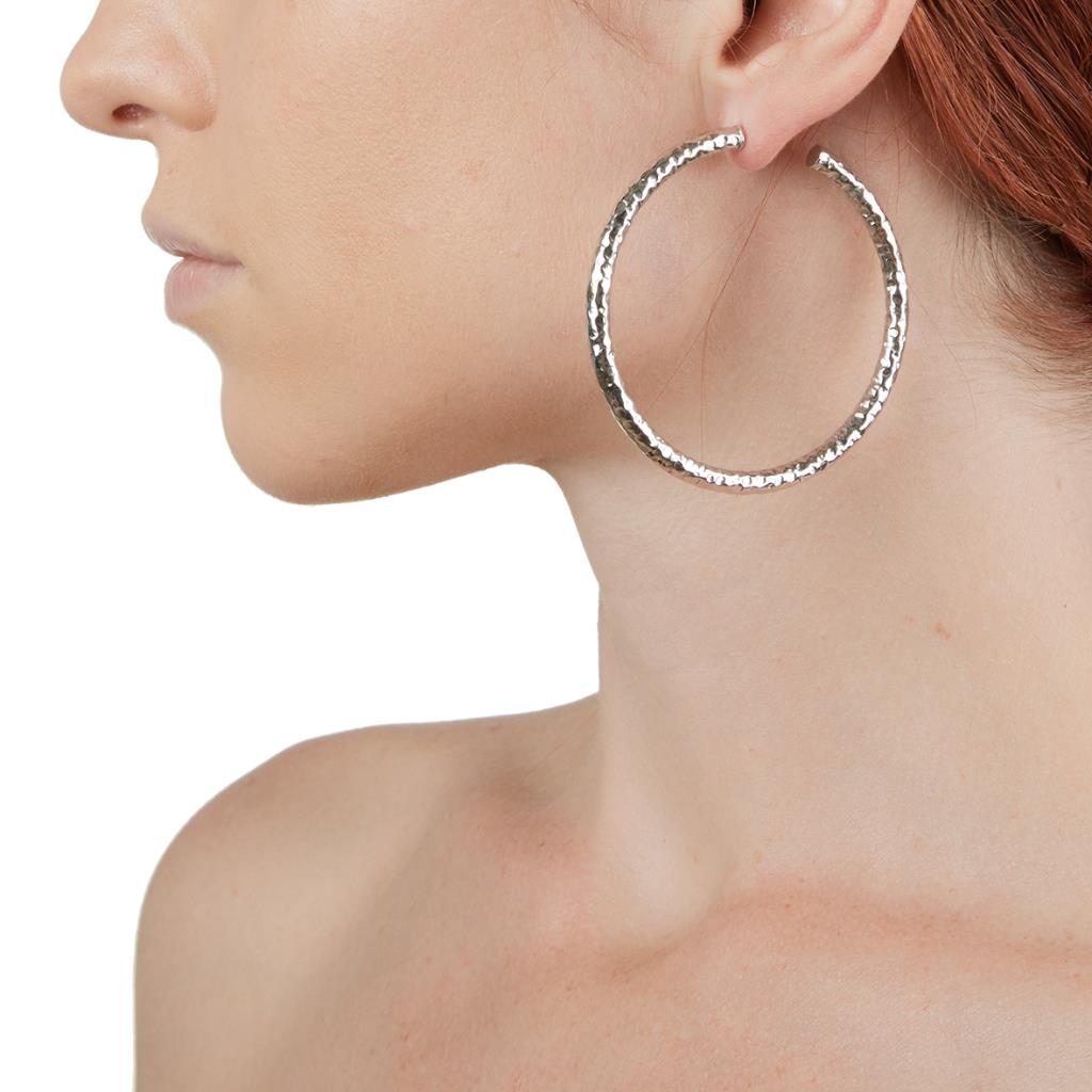 Orecchini in Argento 925Collezione Super Bowl - La luce è tutto. Bellezza iconica che illumina i volti. Riflessi cangianti su texture preziose, come bagliori di stelle lontane.Peso coppia orecchini: 14 gr.Diametro 5,8 cm. Chiusura con farfallina.Fatto a mano in Italia.