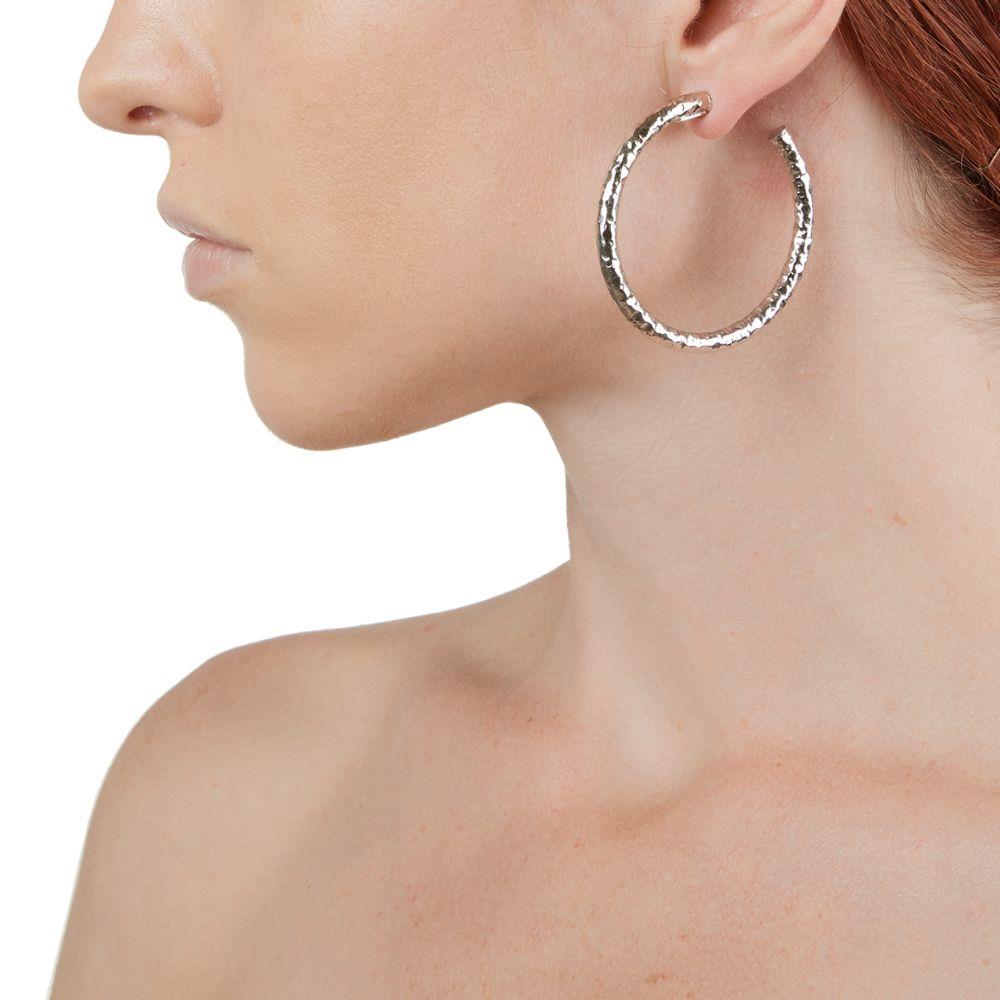 Orecchini in Argento 925Collezione Super Bowl - La luce è tutto. Come quella dell'argento martellato che illumina i volti. Riflessi cangianti su texture preziose, come bagliori di stelle lontane.Peso coppia orecchini: 10 gr.Diametro 4,8 cm.Chiusura con farfallina.Fatto a mano in Italia.