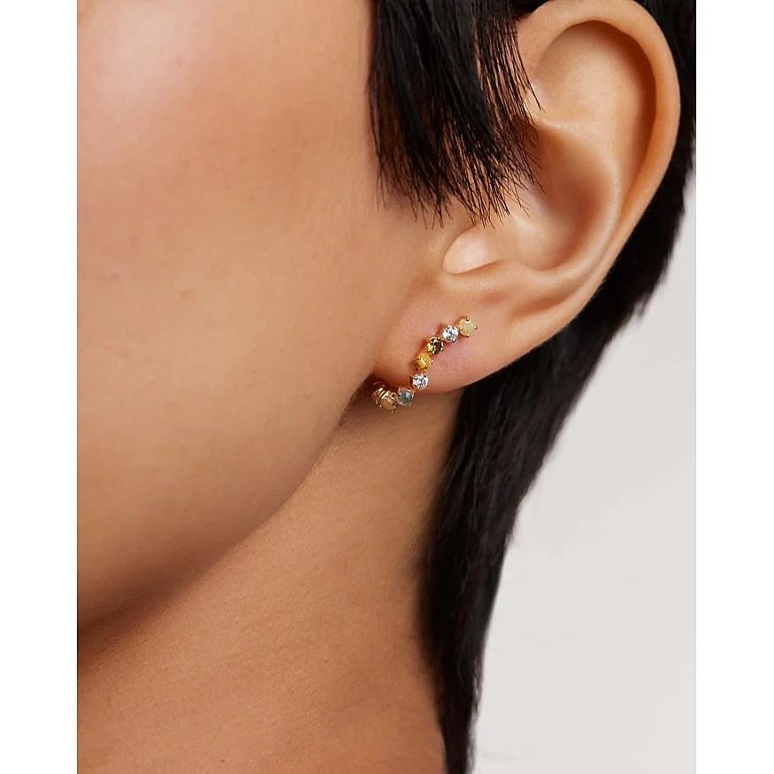 MATERIALE: Argento sterling 925 FINITURA: Placcatura in oro 18k PIETRE: Labradorite, iced zirconia verde chiaro, iced zirconia gialla, zirconia verde, zirconia bianca DIAMETRO PIETRE: 3 mm PESO: 1.66 mm