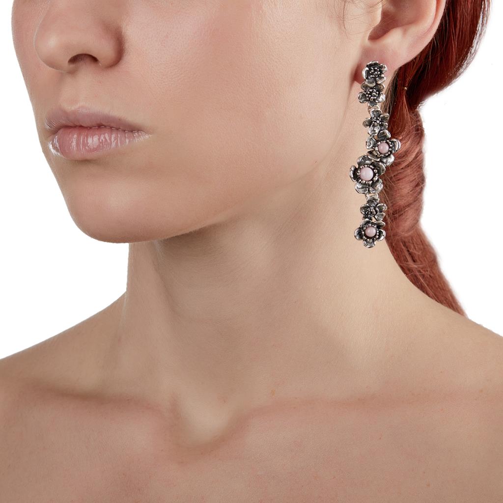 Orecchini in Argento 925 e opale rosaCollezione Wild Rose - La classe delicata dell'opale rosa e l'emozione di una rosa in argento. Avere sulla pelle l'eterno profumo della bellezza.Peso coppia orecchini: 20 gr.Lunghezza 6,6 cm.Chiusura con farfallina.Fatto a mano in Italia.